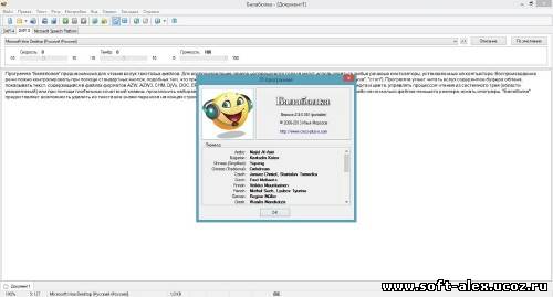 Особенности: Портативная версия работает без инсталяции на компьютер. На компьютере должен быть установлен хотя бы один синтезатор речи (голос).