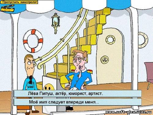 Название: Пипуш в круизе / Piposh Hollywood Жанры: Adventure Язык Интерфейса: Русский Год выпуска: 2001 Разработчик: Guillotine Издатель: Hed Arzi Multimedia Тип издания: Лицензия Лекарство: Не требуется Платформа: PC